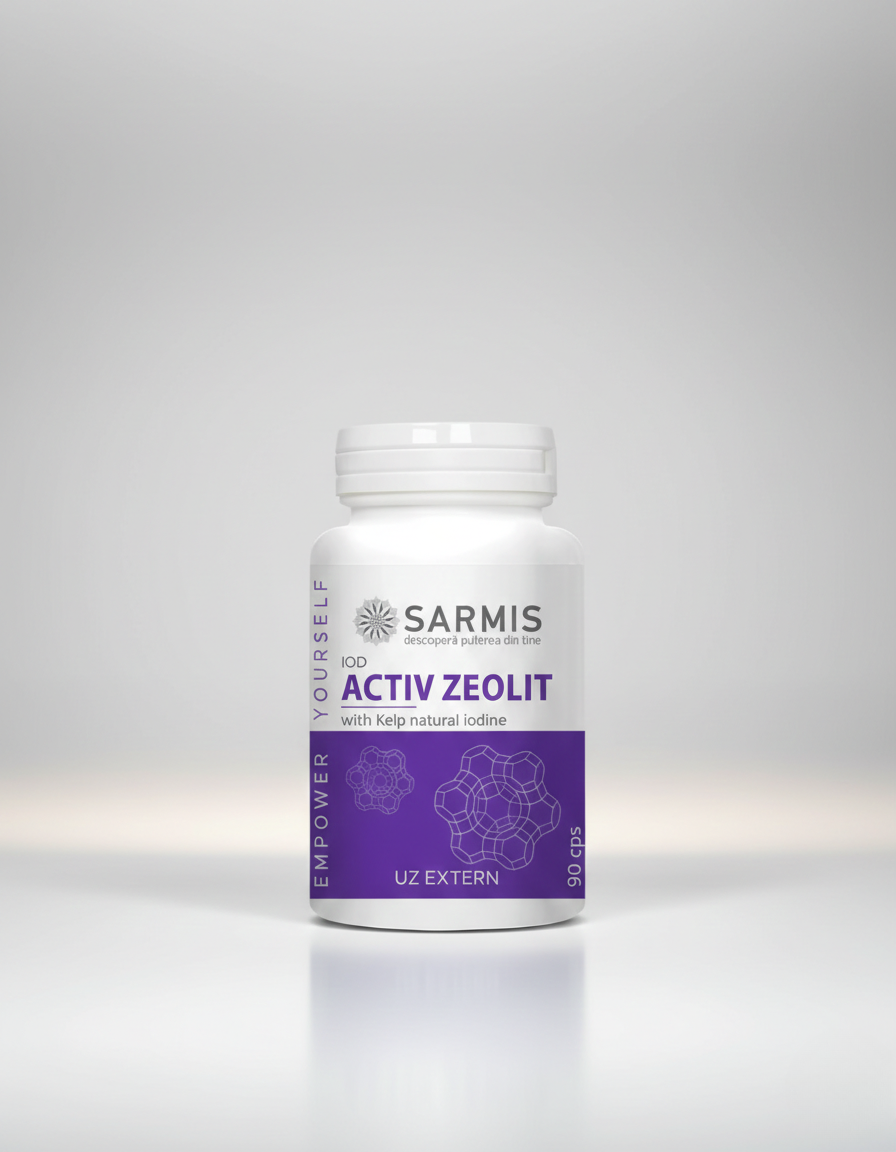 • Clinoptilolit micronizat (83% puritate, 500-600 mg/capsulă) – mineral vulcanic cu structură poroasă de tip fagure.
