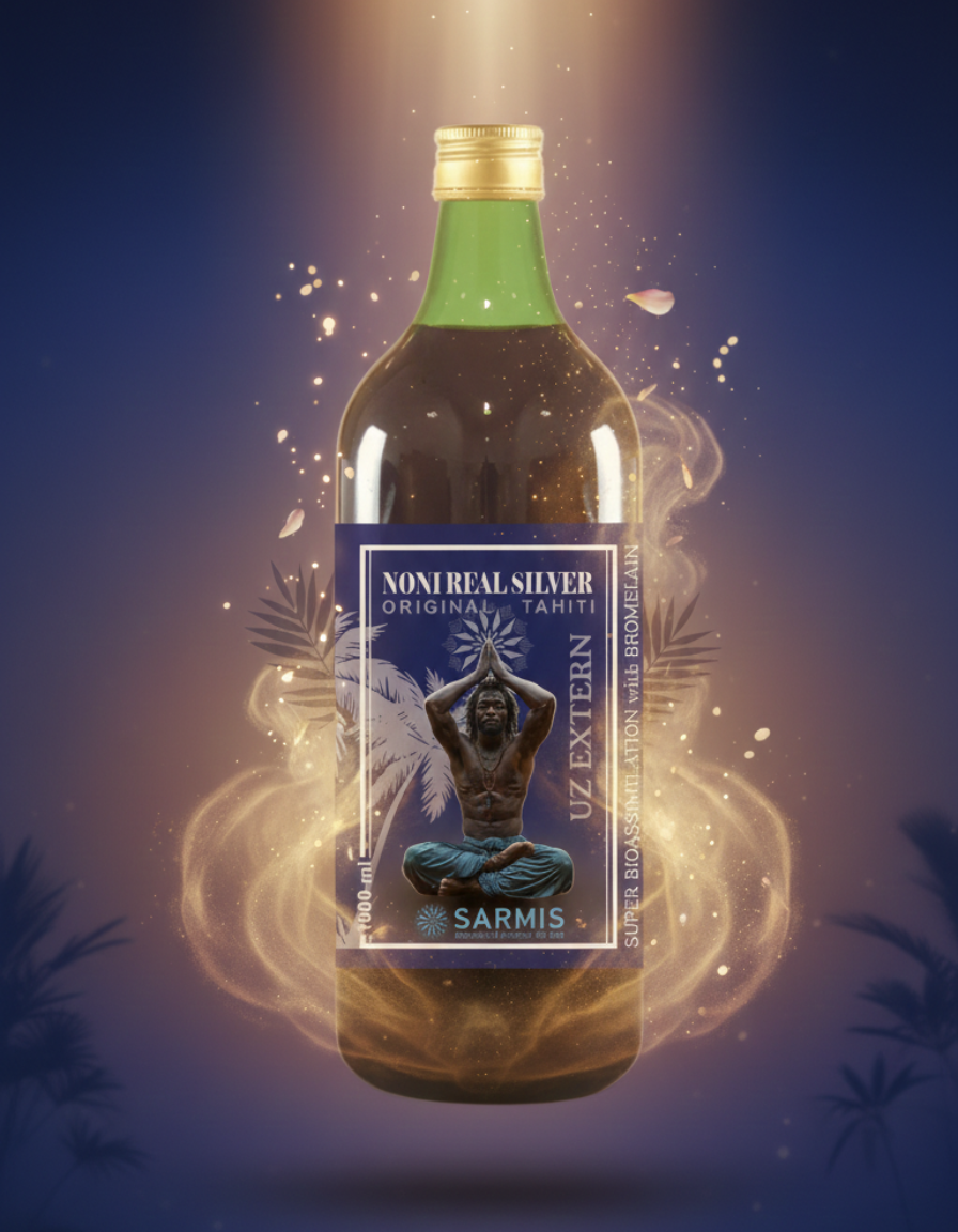 Suc de Noni fortificat cu argint coloidal, obținut din fructe tropicale bio,