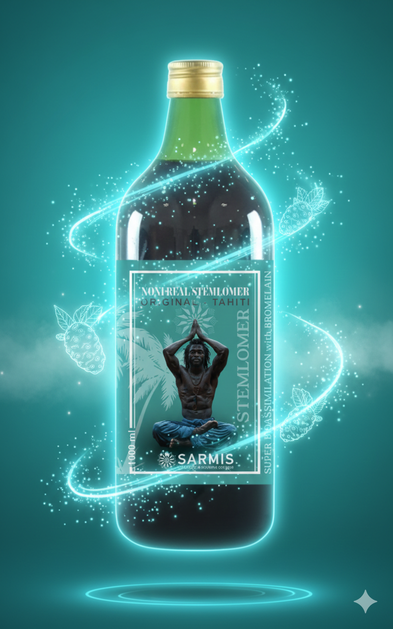 Suc premium de Noni obținut din fructe tropicale recoltate manual din culturi bio, fermentat natural, bogat în nutrienți esențiali și fortificat cu extracte naturale pentru a susține regenerarea celulară, producția de celule stem, detoxifierea și vitalitatea generală, oferind protecție antioxidantă și antiinflamatoare